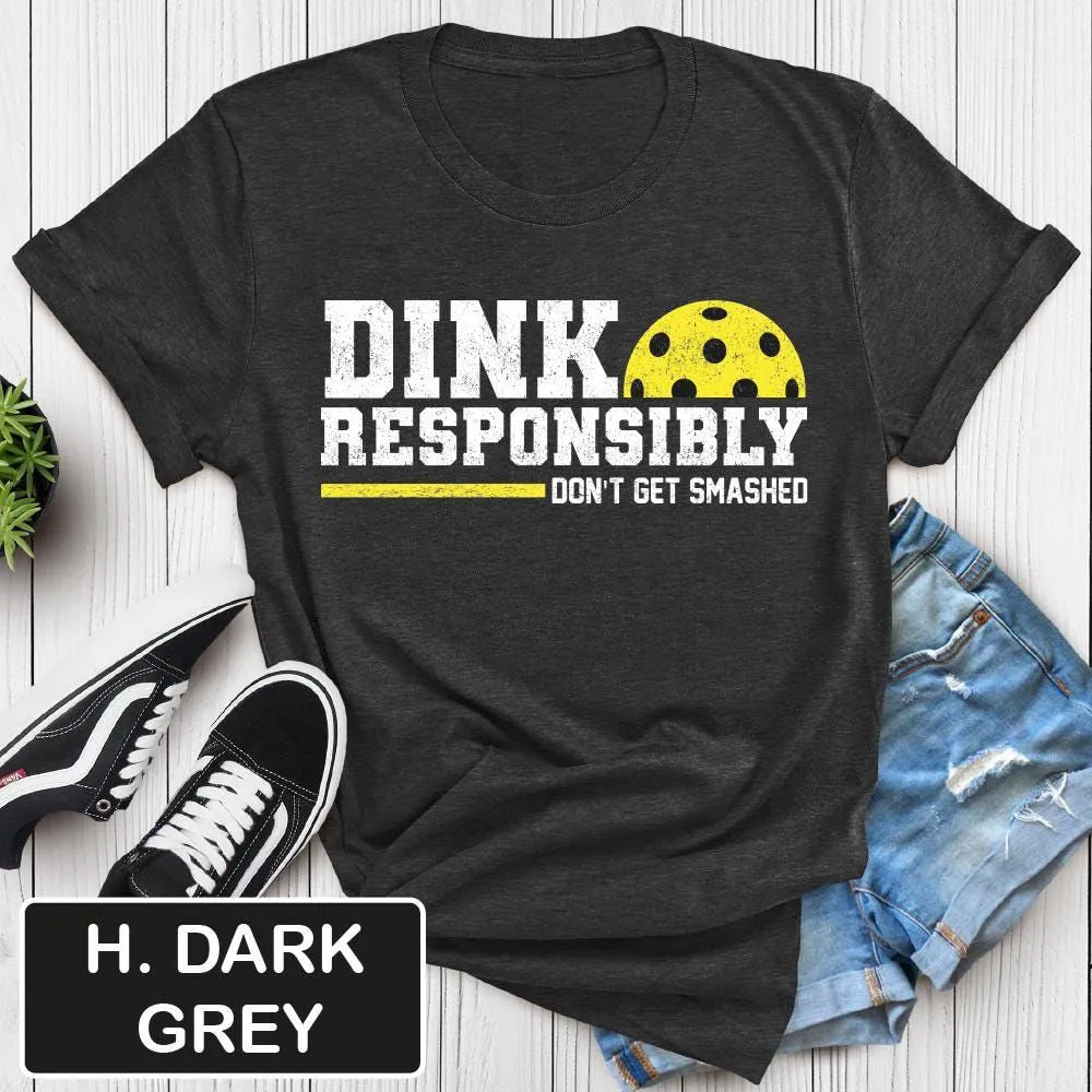 Elevate your pickleball game with our Dink Responsibly T-Shirt! Featuring a humorous pickleball quote, this tee will inspire you and others to play with finesse and control. Show off your love for the game while reminding everyone to dink responsibly.