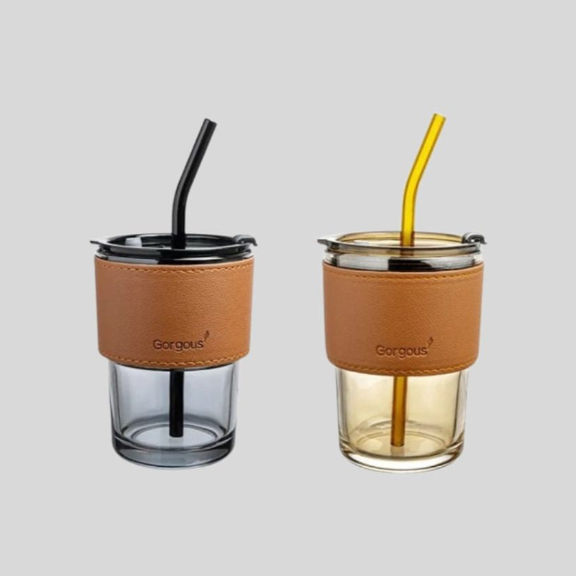 DK – Glass Coffee Sipper Mug with Straw and Lid - 914