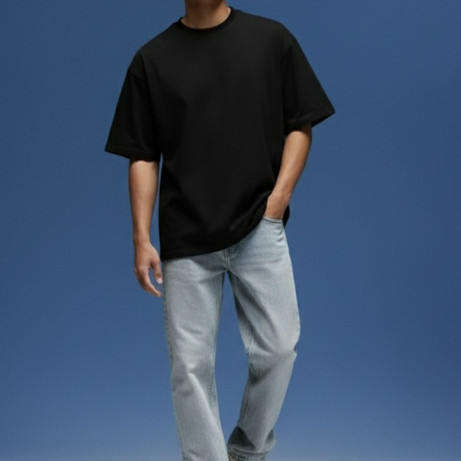 Black Oversized Graphic T-Shirt with Renaissance Inspired Print