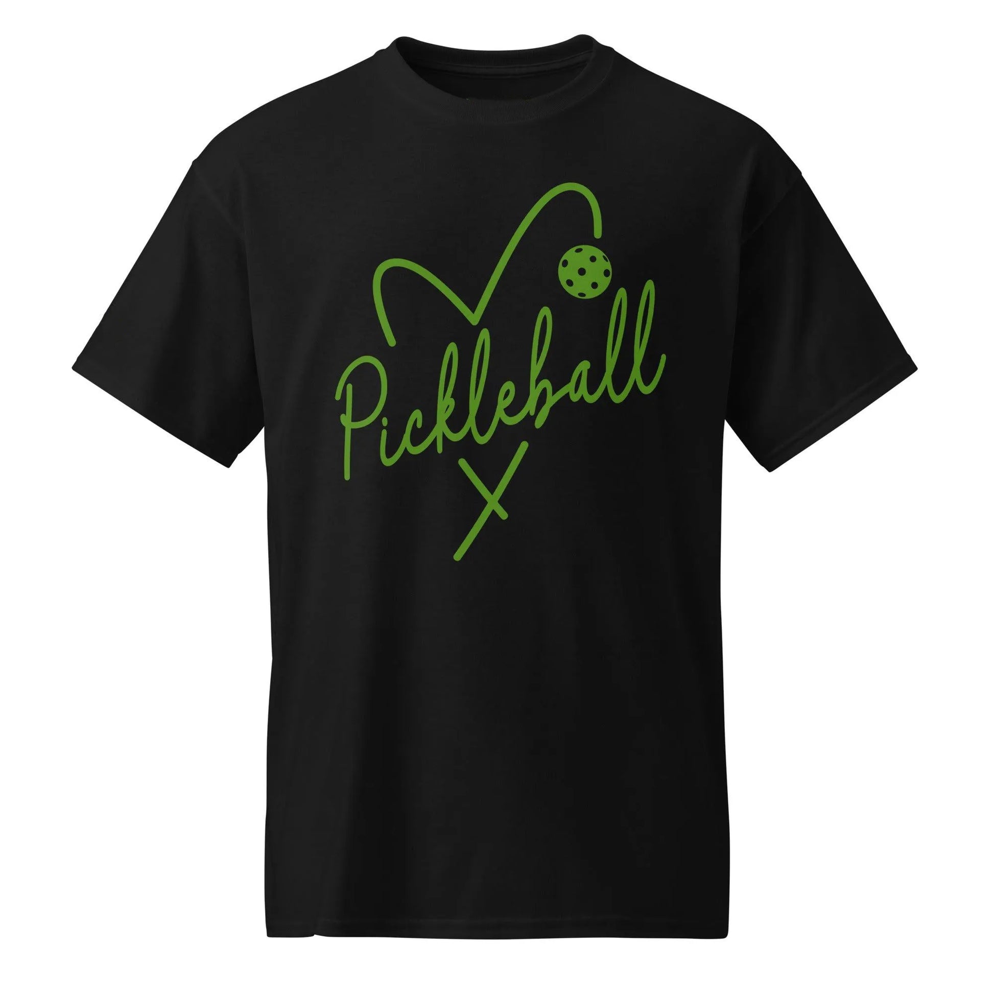 This Green Heart Graphic Pickleball T-Shirt is a must-have for any pickleball enthusiast. Its unique design features a vibrant green heart graphic that adds a touch of style to your game. Made with high-quality materials, this shirt offers comfort and durability for every match. Show off your love for pickleball with this eye-catching shirt!