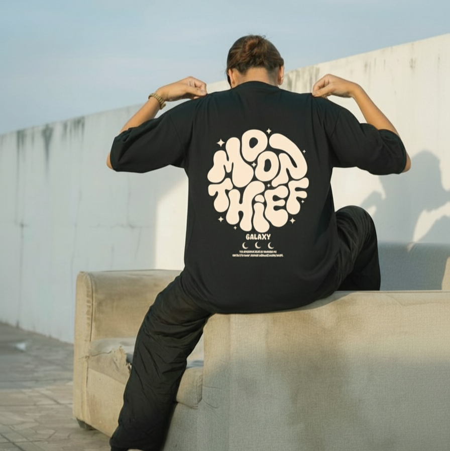 Experience out-of-this-world style and comfort with our Moon Thief Galaxy Graphic Oversized T-Shirt. Made from soft and breathable fabric, this shirt features a stunning galaxy graphic with a daring thief silhouette. Show off your unique sense of fashion and make a statement with this oversized t-shirt.