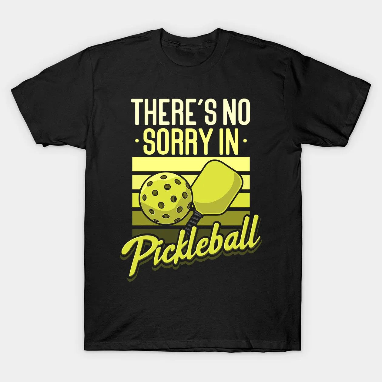 Unleash your love for pickleball with this No Sorry Pickleball Funny Sport Quote T-Shirt! Perfect for any avid pickleball player, this shirt will surely spark a smile and ignite some friendly competition on the court. Don't apologize for your pickleball skills, show off your confidence with this fun and stylish shirt!
